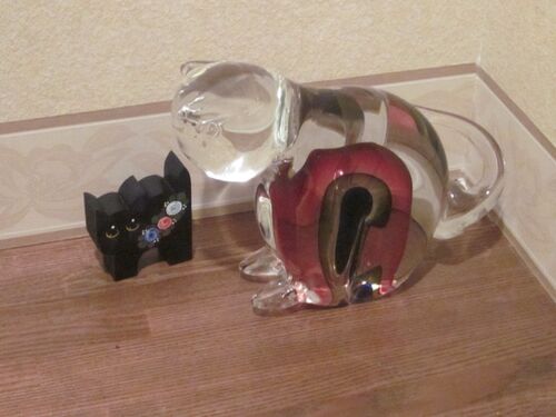コレはちっこい黒猫をエリーに見立てると大きな透明石の猫は(実に重い置物なんだが)遥々オーストラリアから運んで来た我が家では勝手に”猫の神さま”と命名している置物の猫である。 要するに”猫の神さまに守られたエリー”なのだ、、そしてこのデジカメで撮…